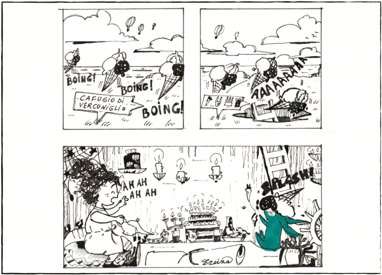 Sesta puntata dei Peluche di Viola Ezeiza, dove Peluche, trasformato in cono gelato dal Baby genio, scappa e finisce in un buco.