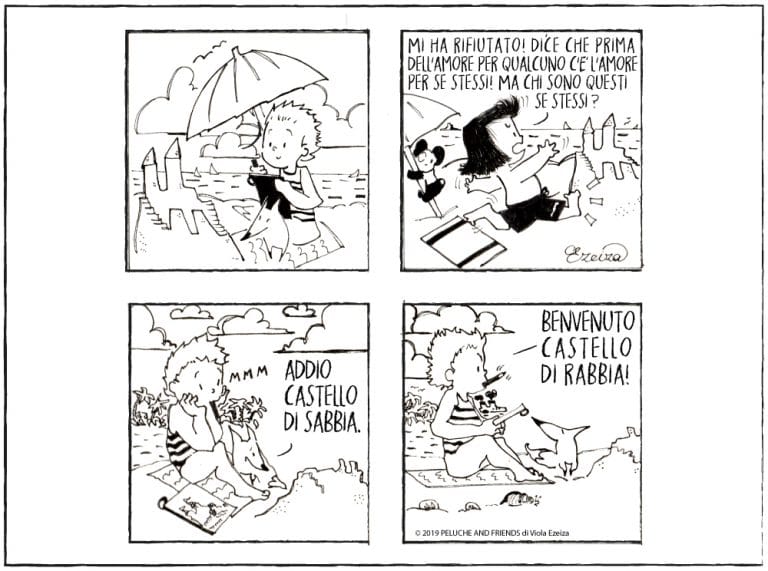 Gigi infuriato corre sulla spiaggia e finisce per calpestare il castello di sabbia del piccolo pittore