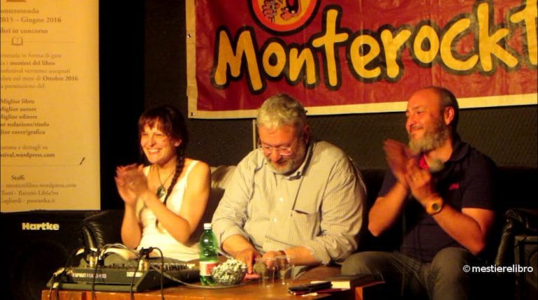 Ho conosciuto Marco Roncaccia diversi anni fa in un laboratorio di scrittura creativa (ci potete vedere nella foto qui sopra in una presentazione con Manuela D’Aguanno). Lui stava scrivendo una storia fantastica, sia nel senso che era di genere fantastico e sia nel senso che era proprio forte. Il suo Roma Caput Zombie, che venne pubblicato da Nero Press, era infatti una storia di morti viventi e mondo del sociale, che nell’ambientazione, nei colori e nei temi anticipava un film di successo, Lo chiamavano Jeeg Robot. Roncaccia poi ha continuato a scrivere (una raccolta intitolata Nero ristretto pubblicata da Alter Ego) e a organizzare attività culturali. Adesso è tornato in libreria con un volume pubblicato da Fuorilinea e mi è sembrato il momento giusto per scambiare con lui due chiacchiere sulla scrittura e gli scrittori.