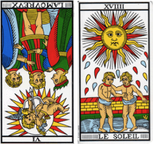 Le carte della settimana: l’Innamorato rovesciato e il Sole.