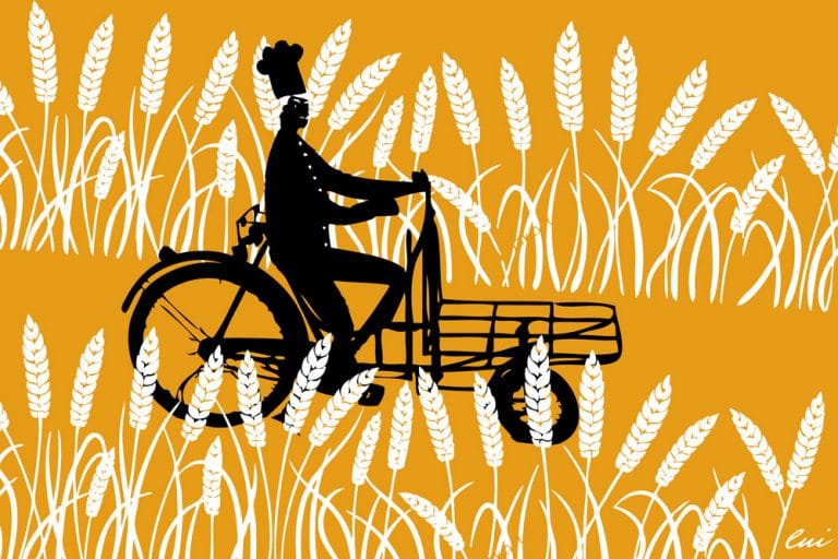 Prendeva ogni mattina la sua bicicletta, il garzone con il suo pantalone, a sbuffo, con la molletta. Metteva nel cesto montagne di pane, sandolini e priorette, tampellucci e morette. I sandolini appuntiti li metteva di sotto, le priorette a coprire formavano un otto, tampellucci più lunghi con le gambe in avanti, le morette alla fine perché troppo ingombranti.