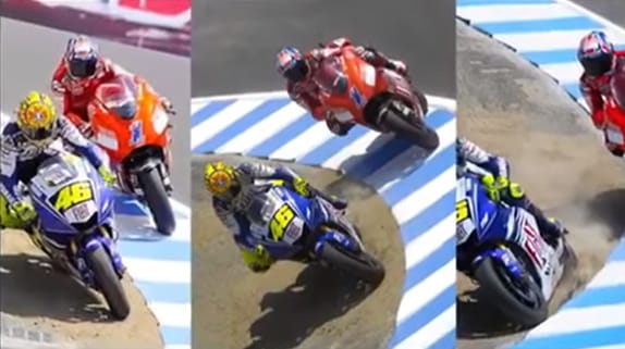 – Però è impossibile scordare il sorpasso alla famosa curva del Cavatappi… Stoner credeva di avergli chiuso ogni passaggio ma Valentino si infilò passando all’interno nello sterrato…