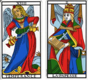 Le carte della settimana: Temperanza e Papessa.