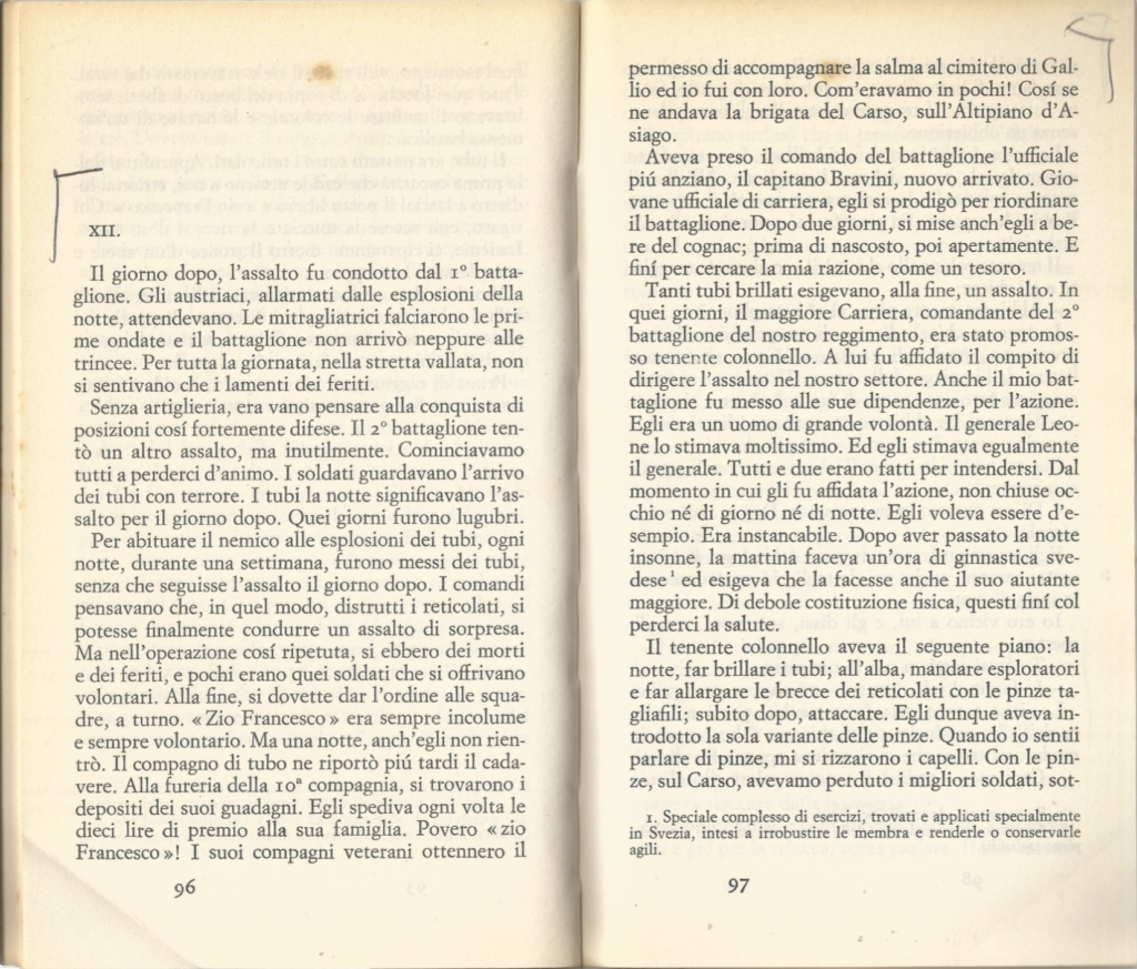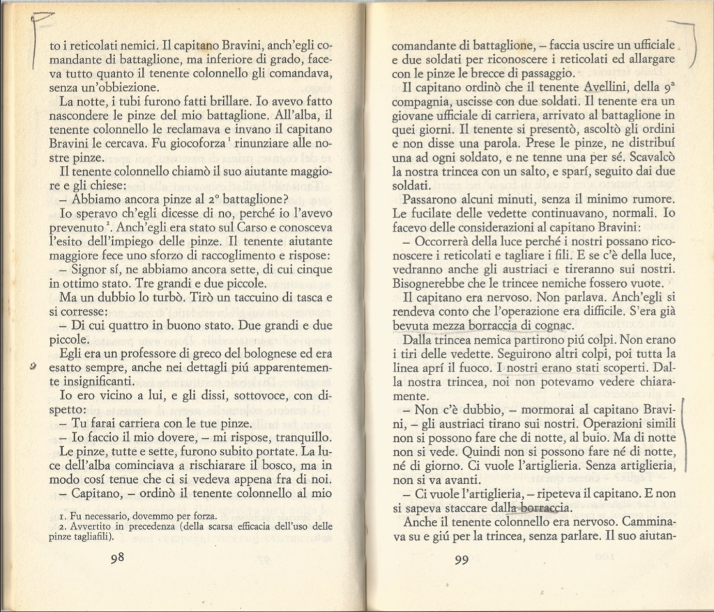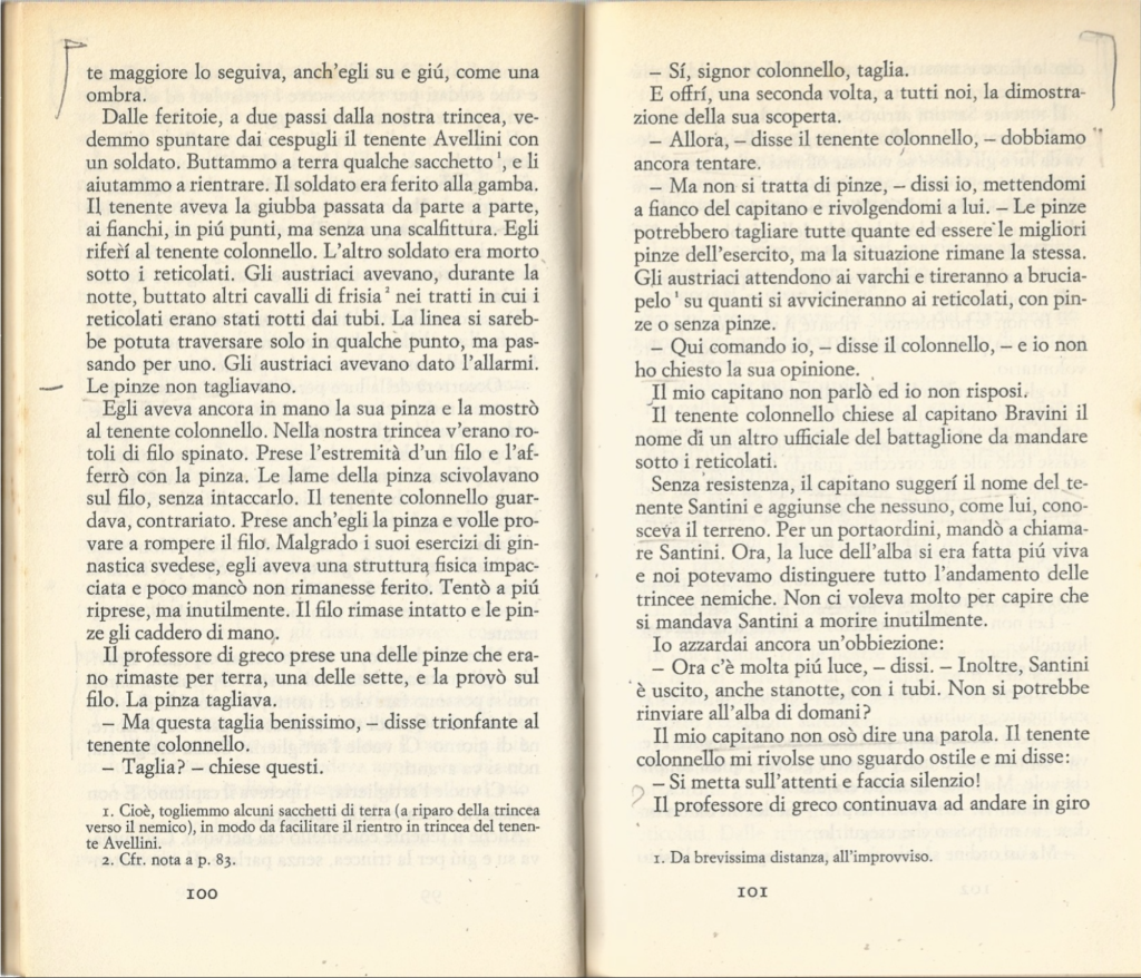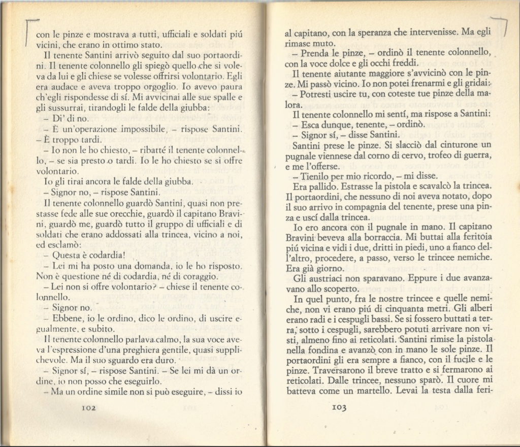 Anni fa, in tempi di pseudo pace, queste pagine di “Un anno sull’Altipiano” di Emilio Lussu mi risuonavano paradossi. Ora, in tempi di pseudo guerra, queste pagine mi risuonano bombe.