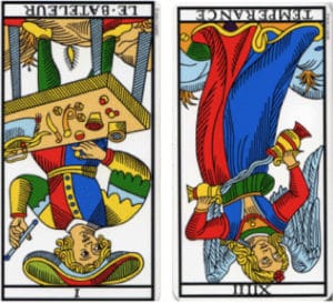 Le carte della settimana: il Bateleur rovesciato e Temperanza rovesciata.