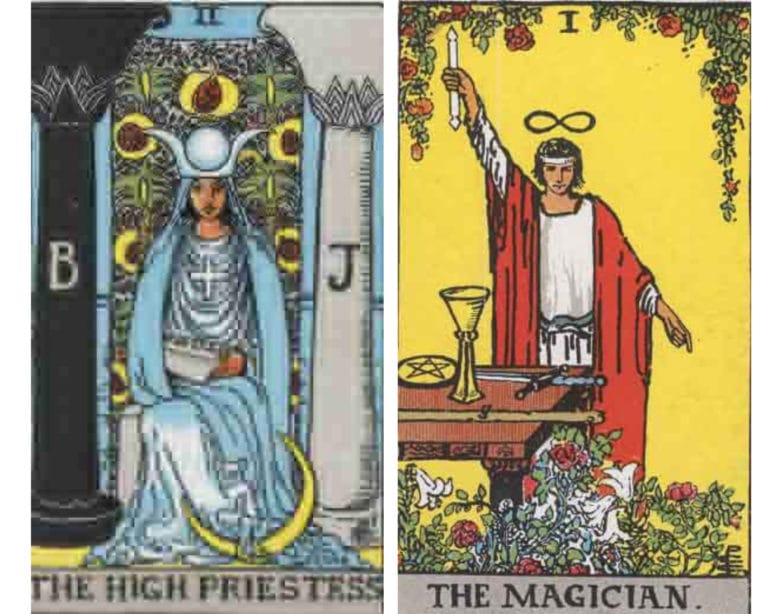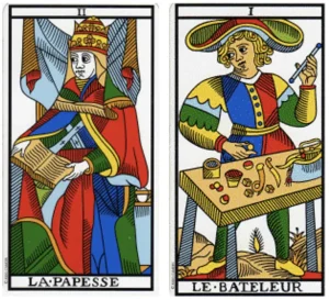 Le carte della settimana: la Papessa e il Bateleur.