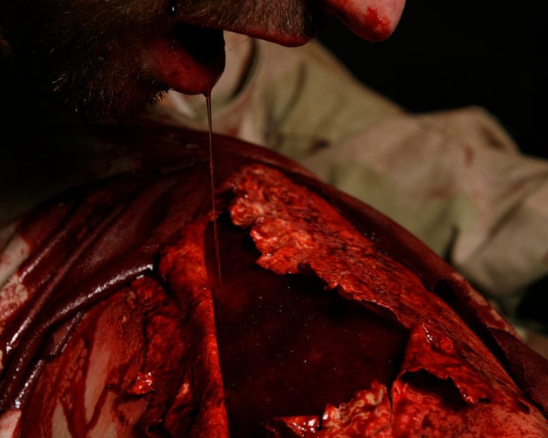 Senza braccia e gambe, guardo la pancia. Gocciola. Una goccia alla volta esce sangue. Alzo lo sguardo. Mi schiarisco la gola, intorno alla corda che mi lega è adattato il microfono che hanno inserito, la lucina è verde, è attivo. La mia voce risuona nella piazza che si silenzia: