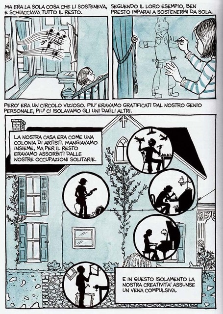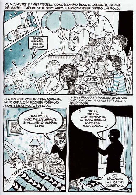 Fun Home è la storia di una figlia, Alison, che fa i conti con la propria omosessualità e con un padre omosessuale anche lui. Un padre scomparso troppo presto, quando lei era ancora al college, in circostanze misteriose. Un incidente, un suicidio? Nessuno lo sa. Un padre perfezionista, ingombrante, che compra una vecchia casa vittoriana e costringe i figli a prendersene cura senza pace proprio come fa lui. Per parlare di tutto questo ci vuole coraggio. “Non è stato un ritorno trionfale”, scrive infatti la Bechdel, “La casa, come l’avevo conosciuta, non c’era più”. E anche questa è una grande verità. Bisogna essere pronti anche a questo quando si decide di prendere e ‘tornare’ a casa: nella casa della nostra infanzia, adolescenza, che non esiste più.