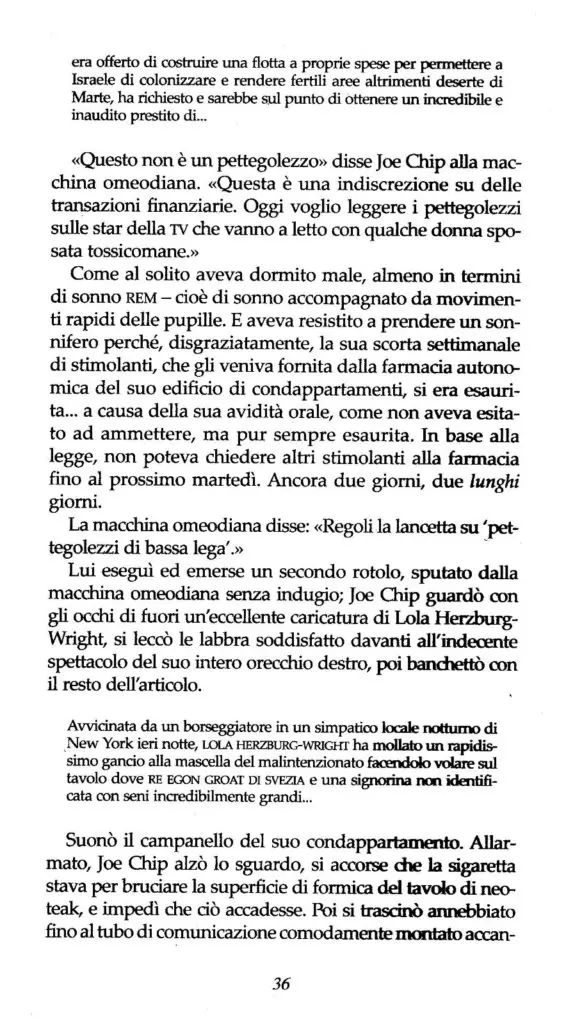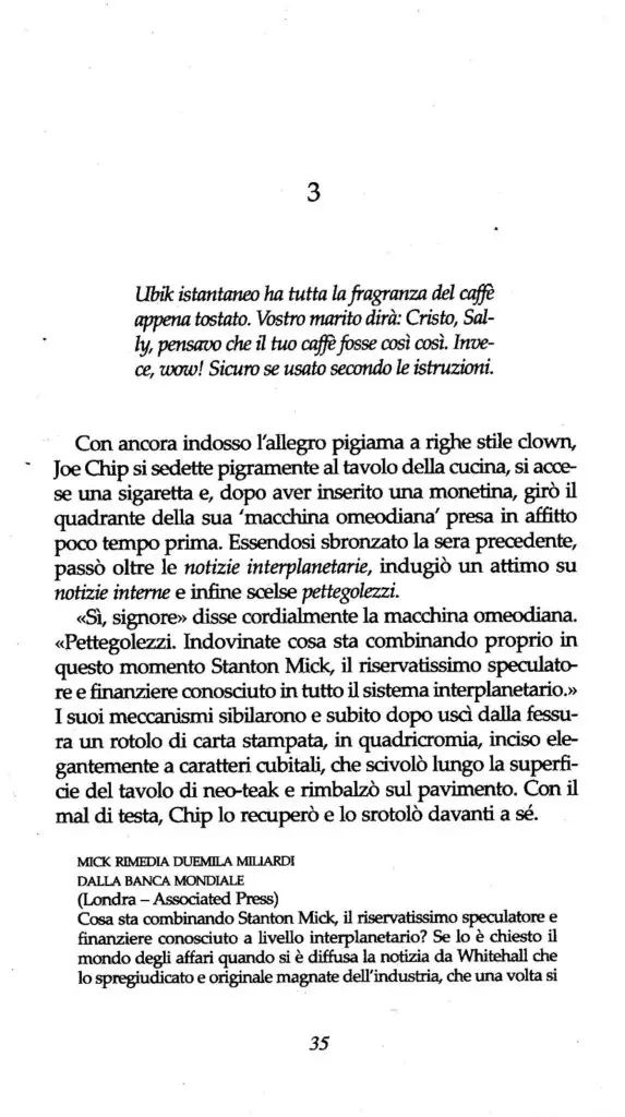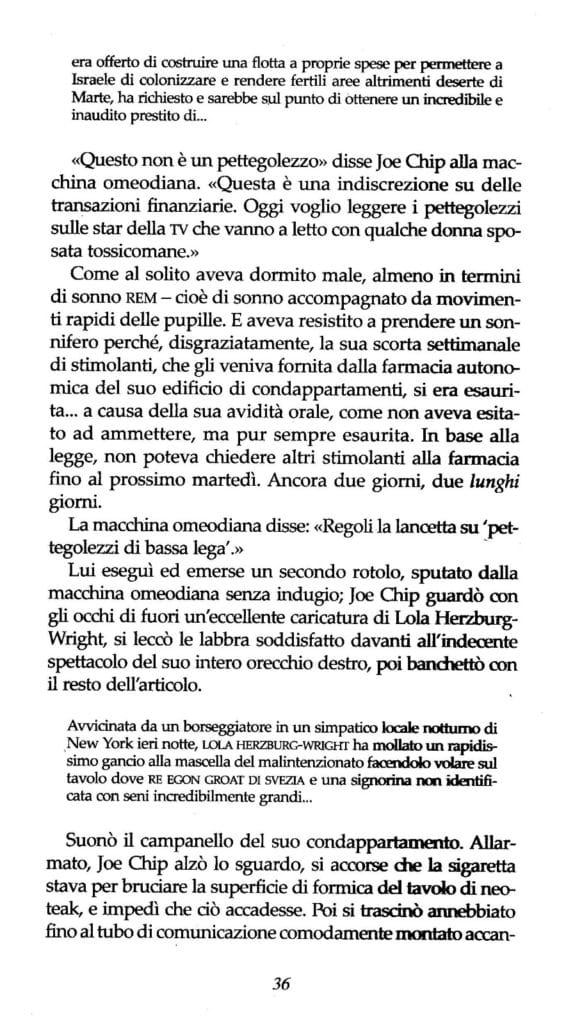 Chi non ha mai fatto sconti quando si tratta di introdurre un protagonista è Philip K. Dick, un autore che viene catalogato nel genere della fantascienza ma che ha sempre usato la fantascienza per trasporre in futuri poco rassicuranti le contraddizioni e le idiosincrasie dell’epoca a lui contemporanea – anzi, quelle che ricorrono in qualsiasi epoca, anche la nostra – incarnandole in personaggi fuori dalle righe, talmente allergici ai condizionamenti del sistema da optare per l’autolesionismo. Non fa eccezione alla regola Joe Chip, il protagonista di Ubik, romanzo che Dick pubblicò nel 1969 e viene giustamente considerato uno dei capolavori della sua produzione.