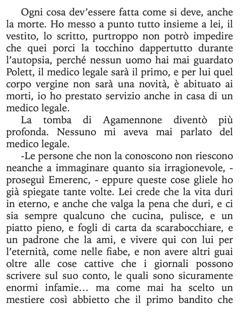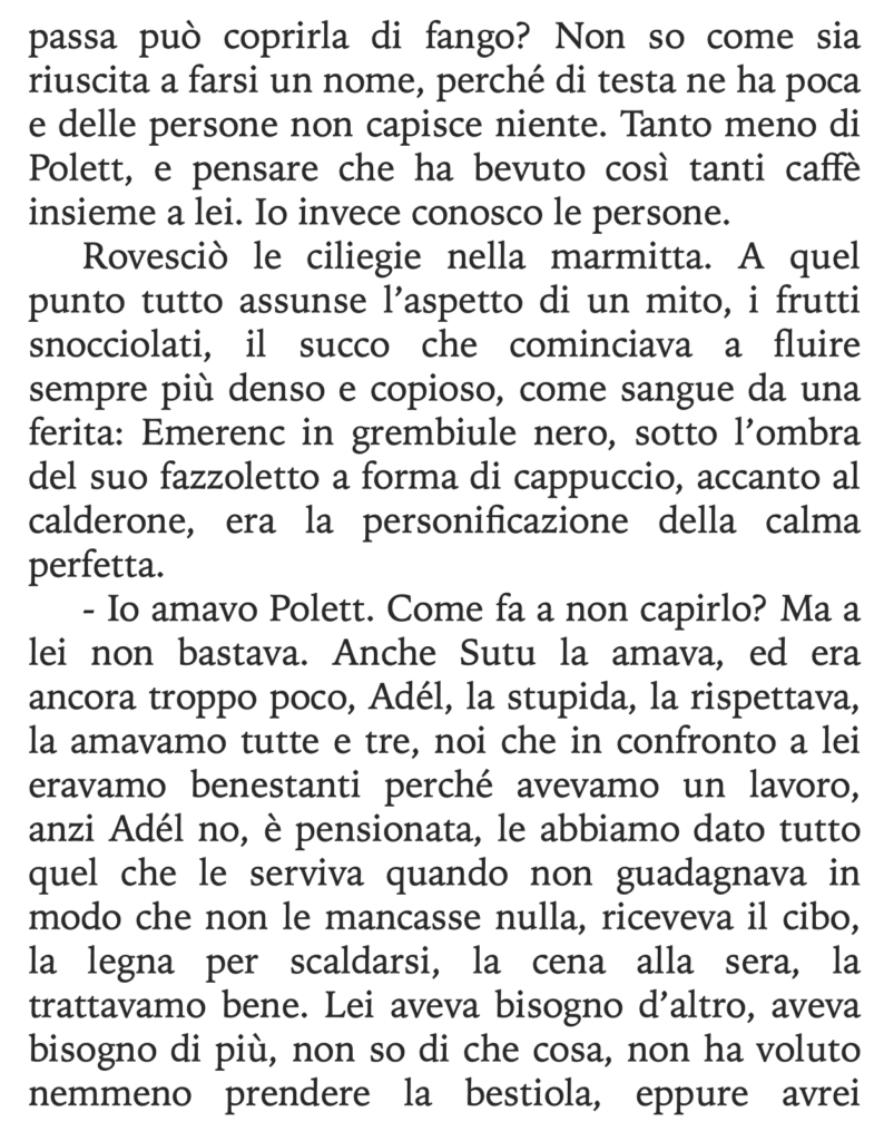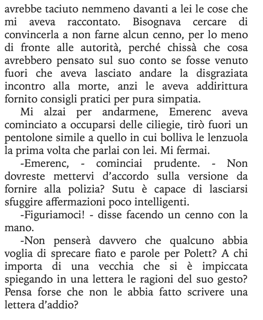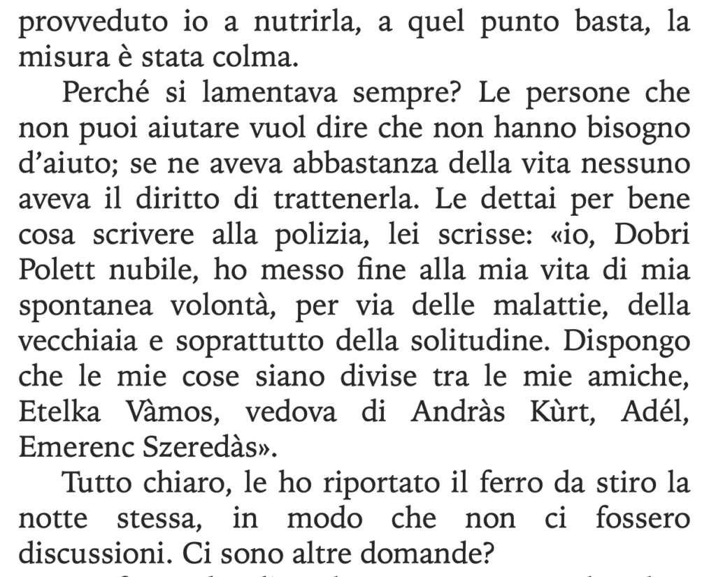 Fool è Emerenc, la vera protagonista de La porta, che può permettersi di confessare di aver aiutato un’amica a togliersi la vita senza provare a fermarla, dandole piuttosto dei suggerimenti per non soffrire e non lasciare nulla in sospeso, e lo racconta continuando serenamente a sgranare piselli e preparare ciliegie sciroppate e, in queste occupazioni, a portare avanti la vita, avere cura di ciò che potrà ancora dare gioia ai vivi e magari riunirli intorno a un tavolo.
