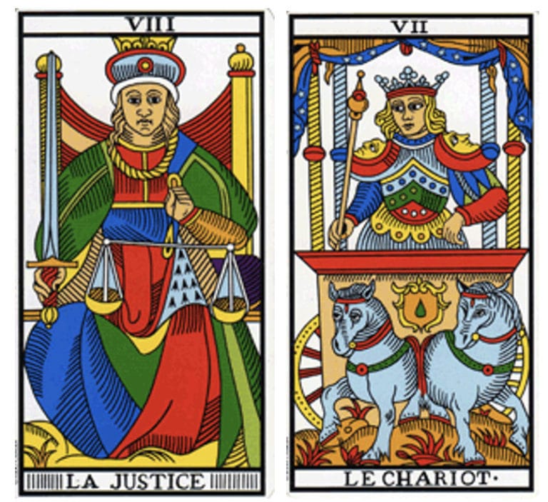 Le carte della settimana: la Giustizia e il Carro