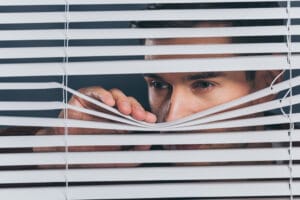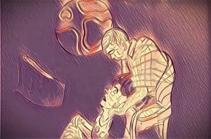Una volta varcata la porta di ingresso, la sagoma buia di Ezio, vista in controluce, in fondo al corridoio, appare gigantesca.