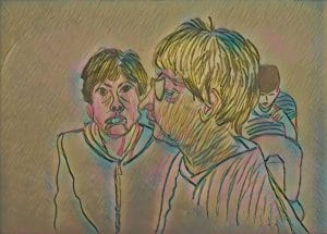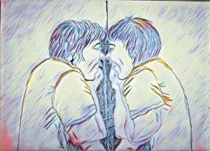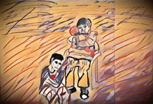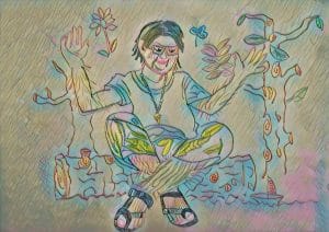 Quando Malù sente questa sofferenza, prende il suo quaderno e riempie due paginette. Nessuno riesce a leggere cosa c’è scritto, perché sul foglio non ci sono lettere, ma onde.