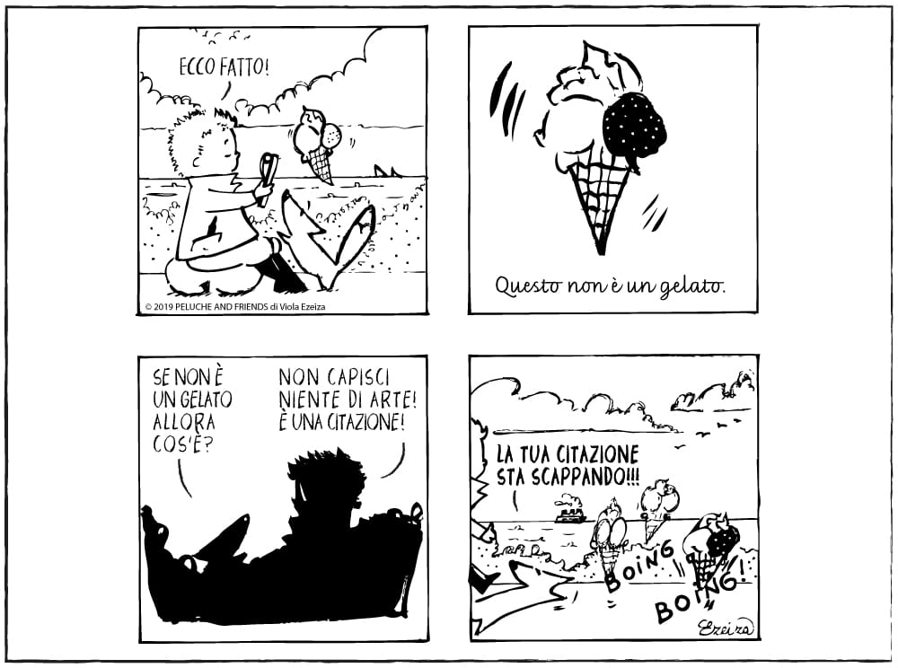 Quinta puntata dei Peluche And Friends di Viola Ezeiza, dove il piccolo pittore ha disegnato il cane peluche trasformato in un gelato citando René Magritte